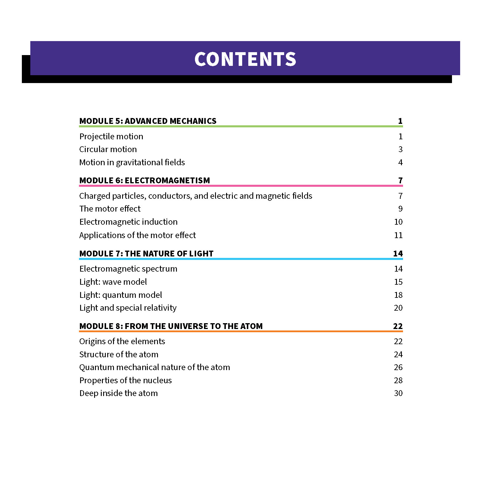 Each Module is broken up into dot point lists of concise summaries for each relevant physics idea or concept, meaning you can easily flip to what you want to revise or find something you’ve forgotten.
