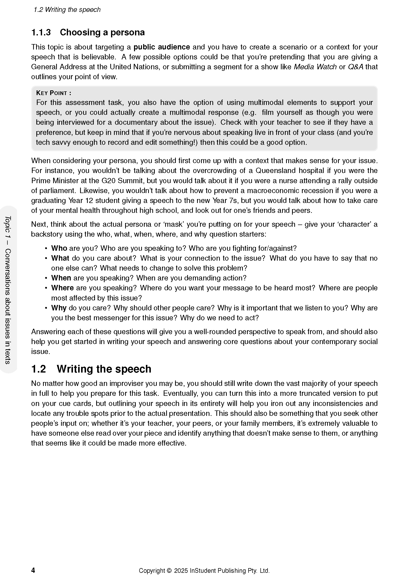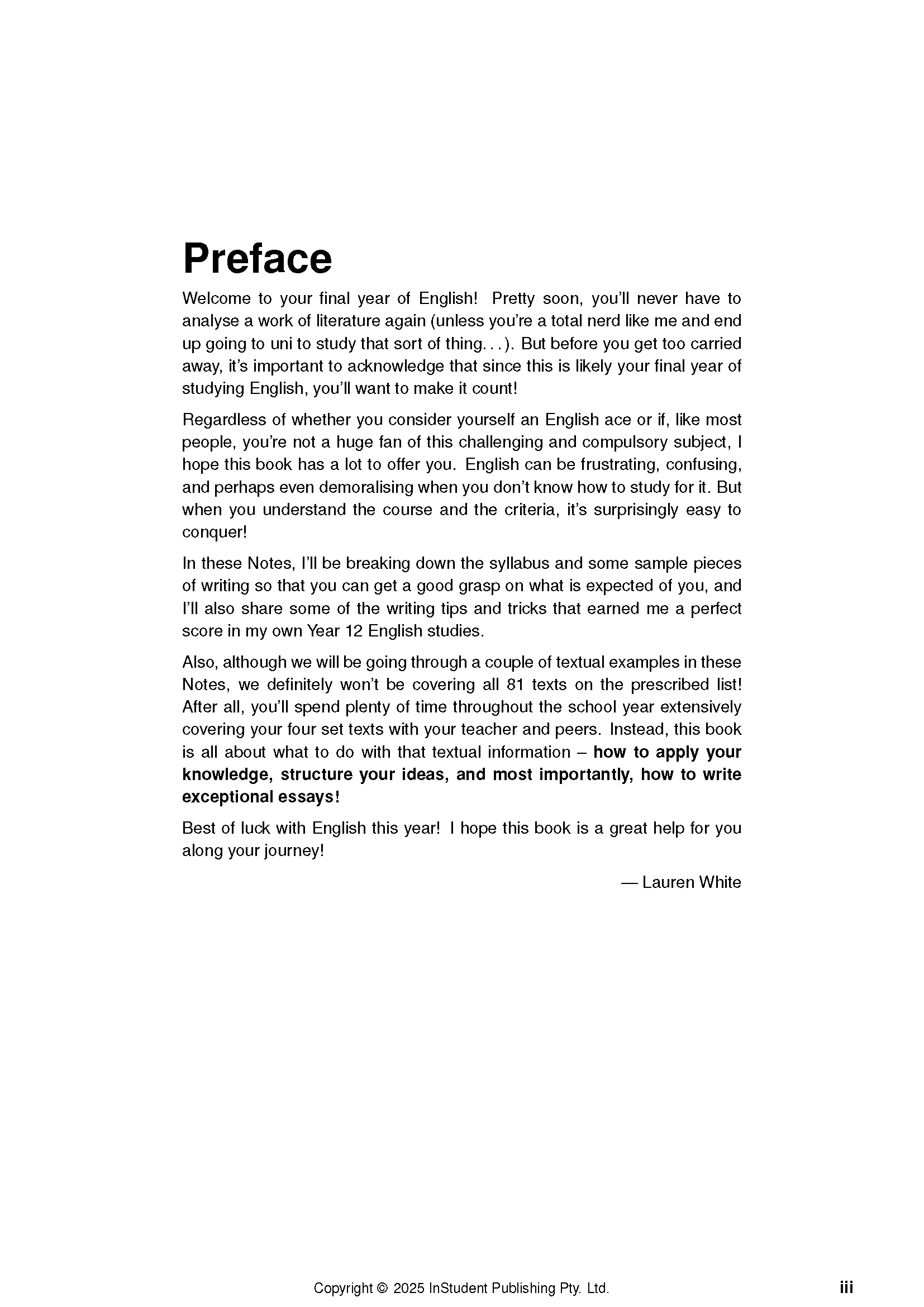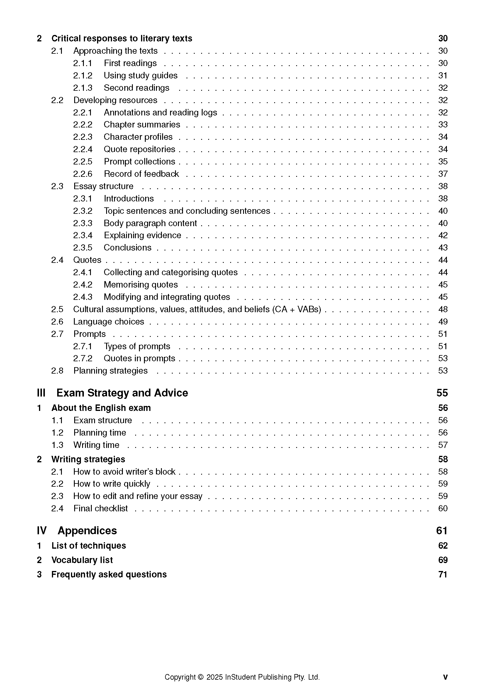 This book will guide you through the entire QCE English course, with detailed advice for each topic including how best to prepare for assessment tasks and exams. There are also sample essays, paragraphs, and sentence templates for you to use, clear explanations of the assessment criteria, and countless tips to boost your English performance so you can feel more confident in your writing.