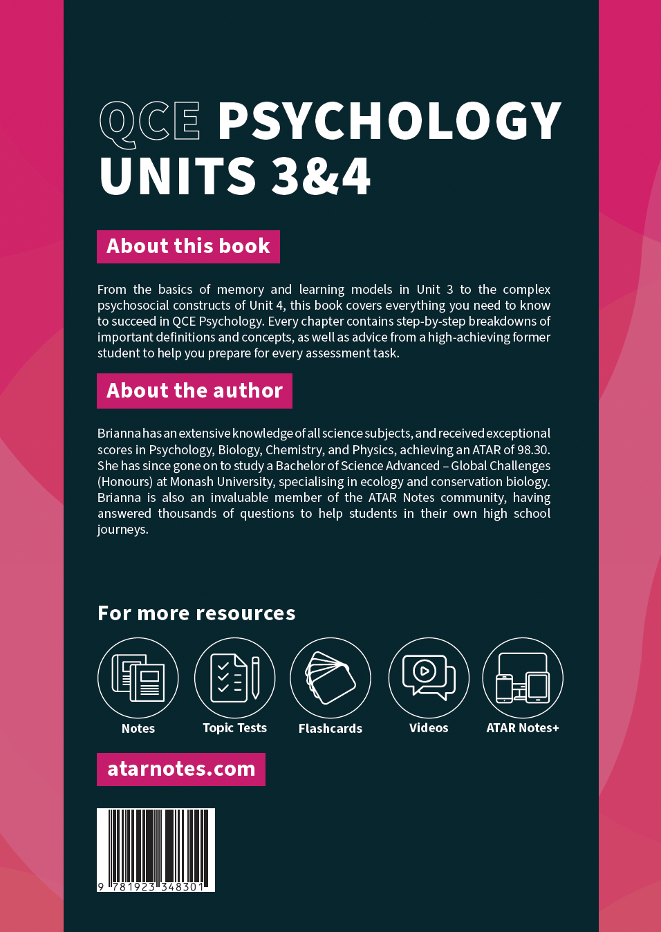 From the basics of memory and learning models in Unit 3 to the complex psychosocial constructs of Unit 4, this book covers everything you need to know to succeed in QCE Psychology. Every chapter contains step-by-step breakdowns of important definitions and concepts, as well as advice from a high-achieving former student to help you prepare for every assessment task.