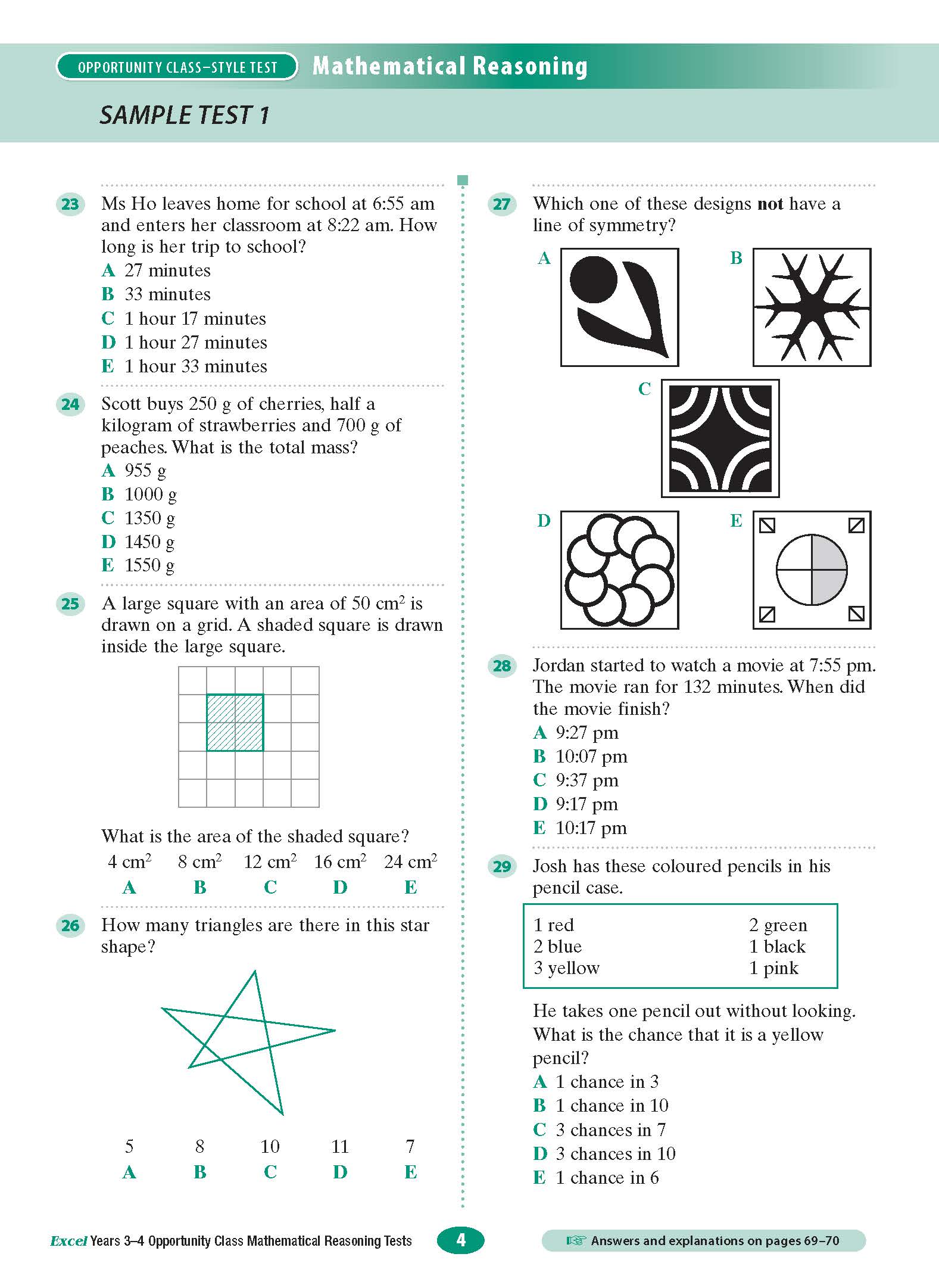 Excel Opportunity Class Mathematical Reasoning Tests for Years 3-4 is a comprehensive study guide for students preparing for the mathematical component of the Opportunity Class Test.