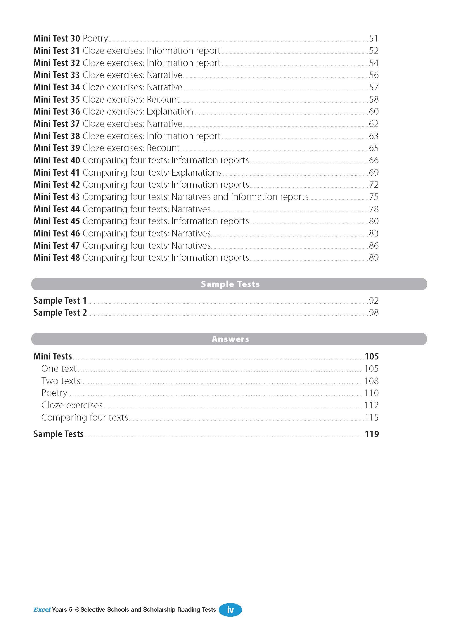 Excel Selective Schools and Scholarship Reading Tests Years 5-6