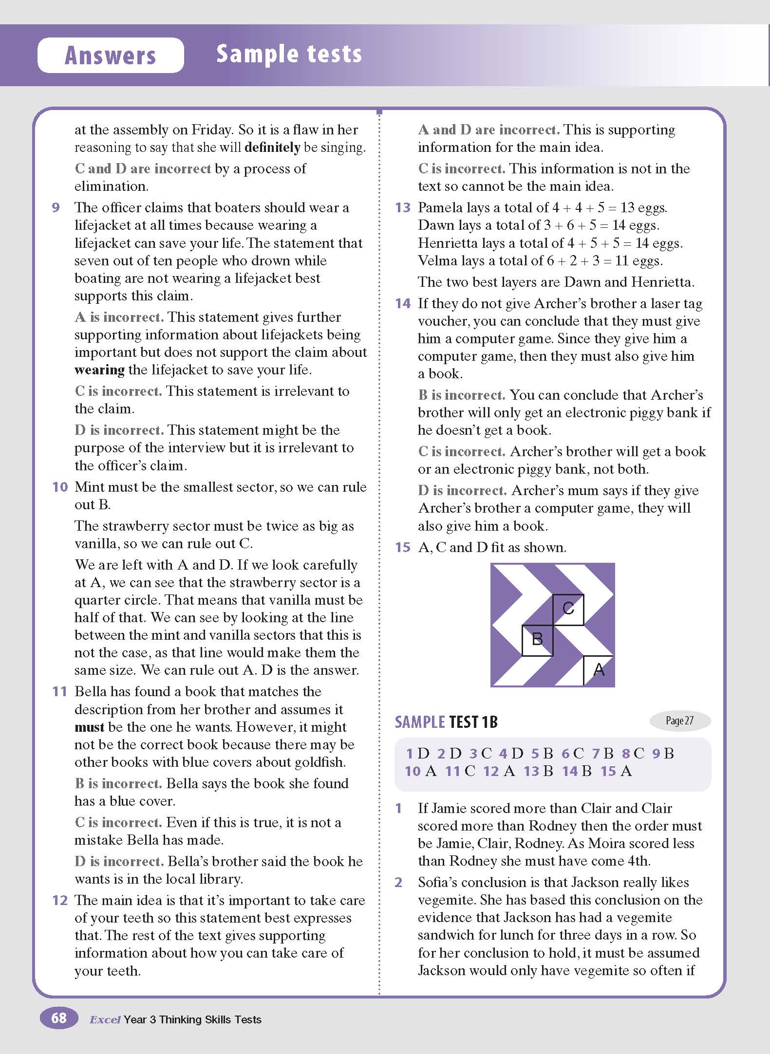 Excel Excel Test Skills - Thinking Skills Tests Year 3 is designed to help students feel more confident in sitting Thinking Skills Tests, which are tests in the Year 3 NSW Opportunity Class Placement Test, and learn the skills to approach each type of question