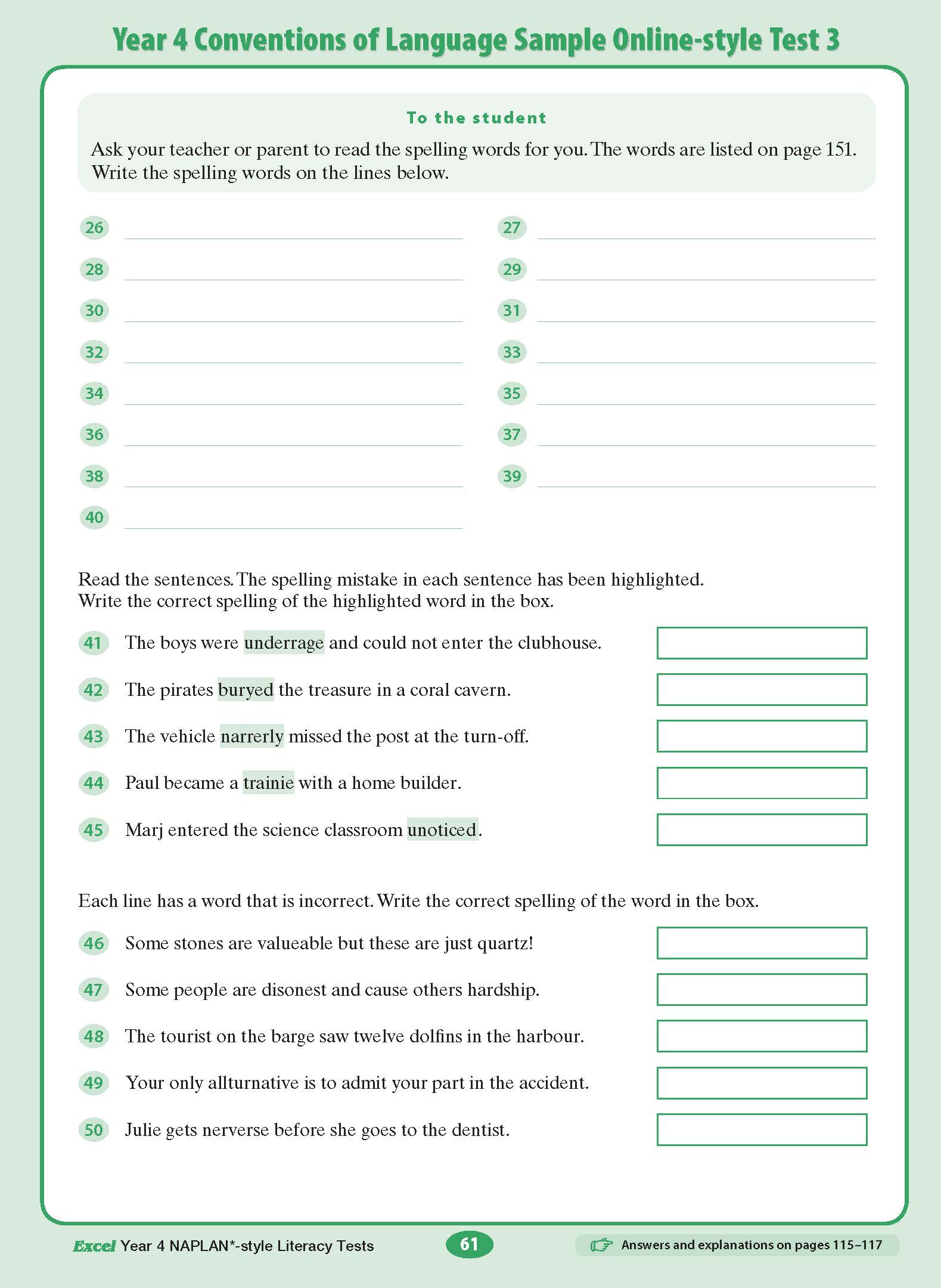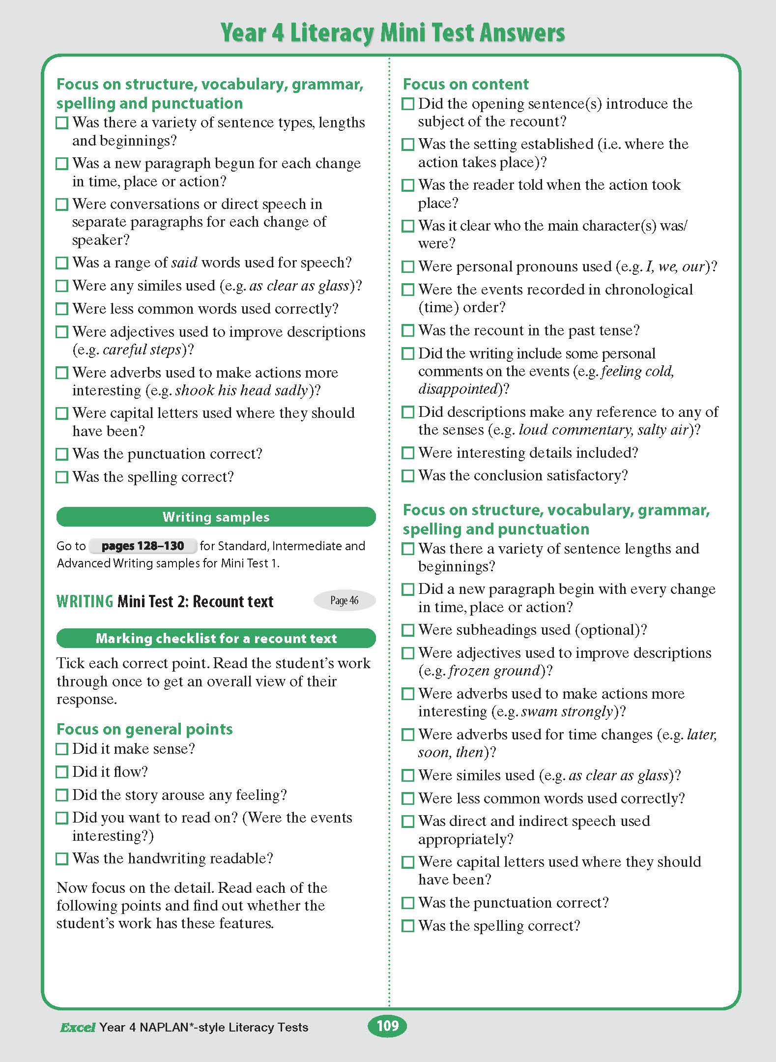 Excel Year 4 NAPLAN*-style Literacy Tests includes: