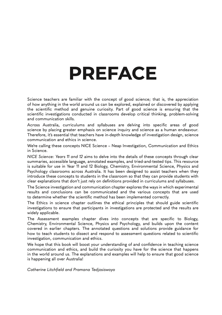 NICE Science: Years 11 and 12 is the ultimate companion for teaching science investigation, communication and ethics concepts in the classroom. This book is designed to support teachers as they engage students in the exploration of science as human endeavour and science inquiry.
